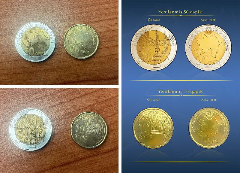 Центральный банк (ЦБ) Азербайджана обновил металлические деньги достоинством 10, 20 и 50 гяпиков, добавив в их дизайн изображение государственного герба и указание года выпуска
