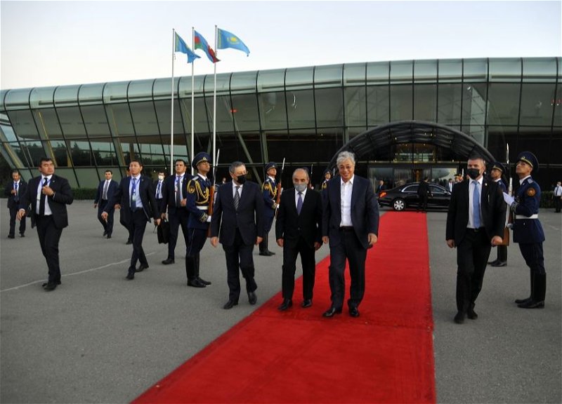 Президента Казахстана Касым-Жомарта Токаева в аэропорту провожали первый заместитель премьер-министра Азербайджана Ягуб Эйубов, заместитель министра иностранных дел Халаф Халафов и другие официальные лица.