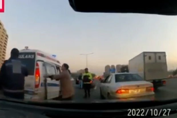 Автомобиль врезался в машину скорой помощи на дороге Баку - Сумгайыт