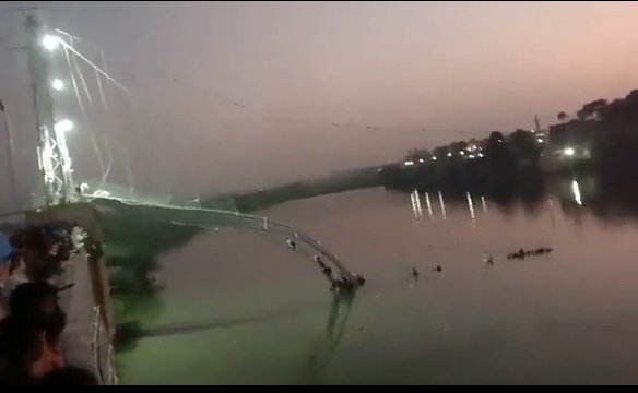 Как минимум 40 человек погибли и более 100 пропали без вести при обрушении подвесного моста в штате Гуджарат в Индии. Об этом сообщает телеканал Odisha TV.