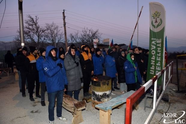 Экоактивисты и волонтеры скандируют лозунги с призывами прекратить экологическое преступление и террор в Карабахском экономическом районе АР, беречь окружающую среду и разрешить провести мониторинг. Протестующие по-прежнему демонстрируют решительность и высокий моральный настрой.