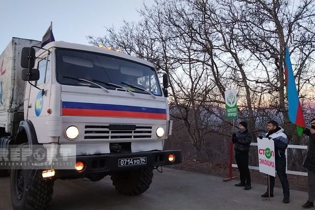 26-й день акции протеста: автомобили миротворцев беспрепятственно движутся по дороге Ханкенди - Лачын