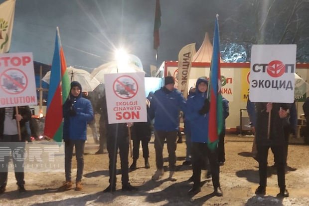 Несмотря на интенсивный снегопад, акция протеста на дороге Ханкенди-Лачин против незаконной эксплуатации месторождений полезных ископаемых в Карабахском экономическом районе Азербайджана продолжается, сообщает Report.