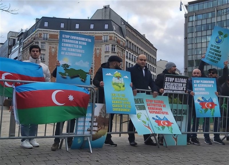 В Брюсселе перед зданием Европарламента Домом Азербайджана и Федерацией азербайджанцев Бельгии была организована мирная акция в знак протеста против армянского экотеррора.