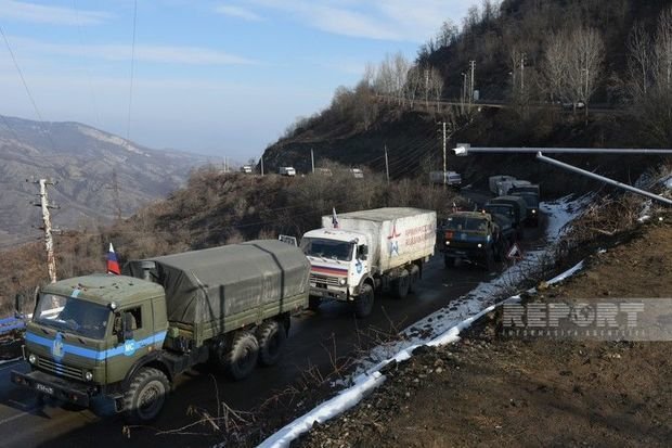 Как передает Report, из Лачына в направлении Ханкенди беспрепятственно проехали 9 грузовиков и 2 легковых автомобиля РМК.