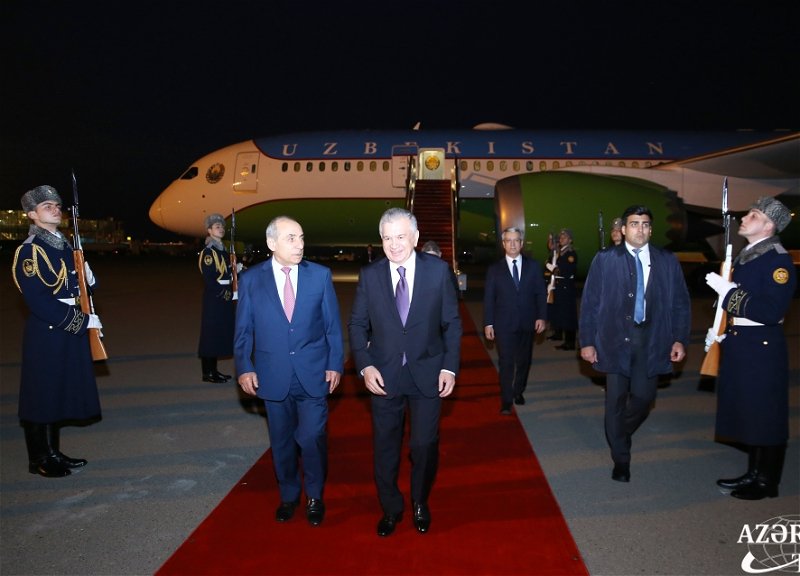 Президента Узбекистана Шавката Мирзиёева встречали первый заместитель премьер-министра Азербайджана Ягуб Эйюбов, заместитель министра иностранных дел Халаф Халафов и другие официальные лица.