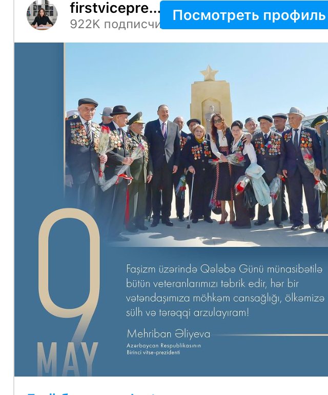 Мехрибан Алиева поделилась публикацией по случаю Дня Победы над фашизмом