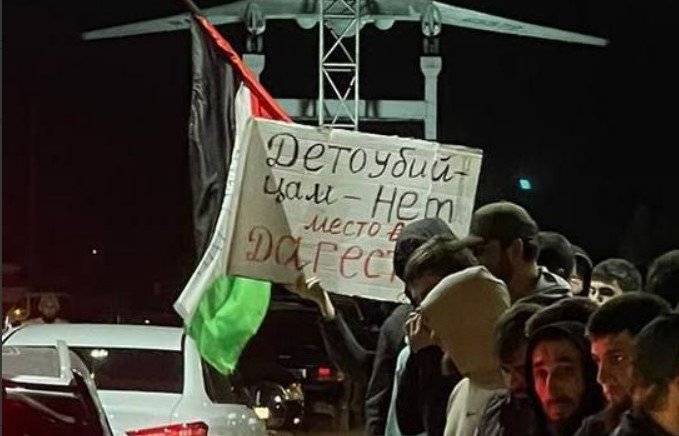 Демонстранты скандируют лозунги «Детоубийцам нет места в Дагестане» и выступают против пребывания израильтян в республике.