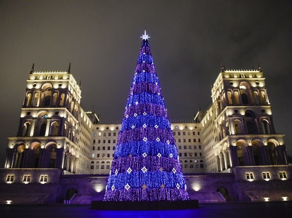 Главная елка Азербайджана на площади Азадлыг (Свобода) в Баку высотой 37 метров была зажжена 23 декабря 2018 года.