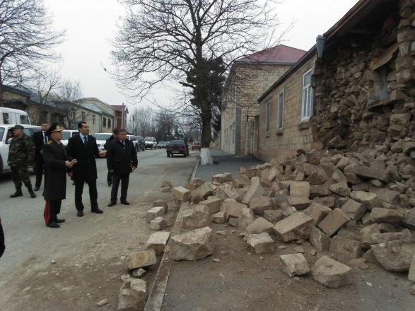 Кямаледдин Гейдаров на территории землетрясения в Шамахе