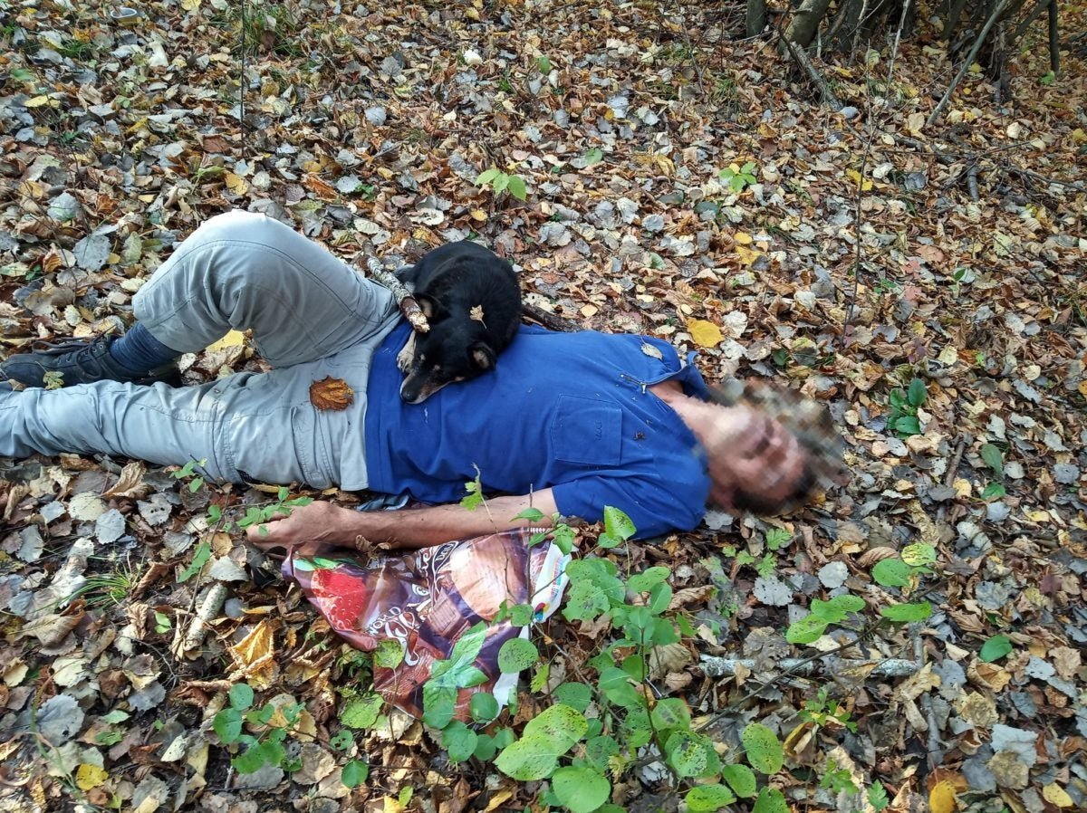 Собака спасла своего хозяина, которому стало плохо в лесу