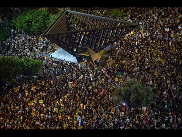 Недовольные действиями властей жители Тель-Авива вышли протестовать на площадь Ицхака Рабина. По данным NEWSru.co.il, около 10 000 человек приняли участие в манифестации.