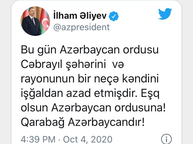 Ильхам Алиев объявил об освобождении Джебраила