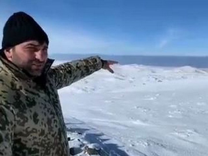 На кадрах популярный спортсмен Кямиль Зейналлы показывает на озеро Гейча и на палатку, где находятся армянские военнослужащие.