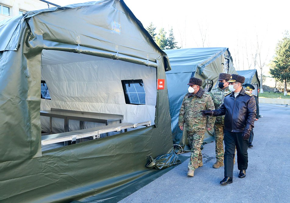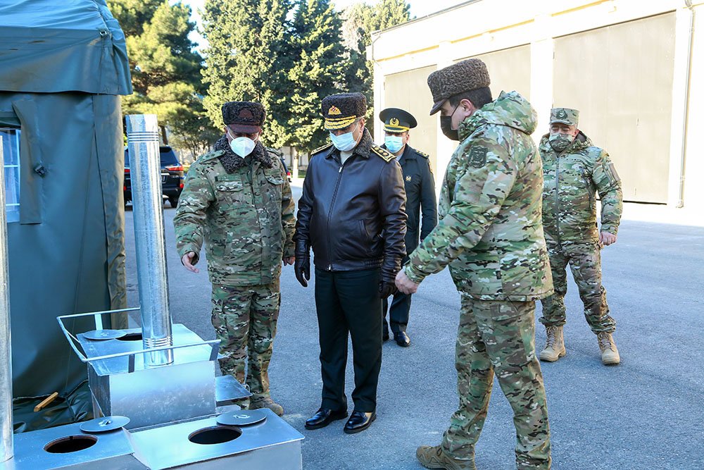 Министр обороны генерал-полковник Закир Гасанов и руководство министерства осмотрели мобильные объекты модульного типа, закупленные для подразделений, дислоцированных на освобожденных территориях.