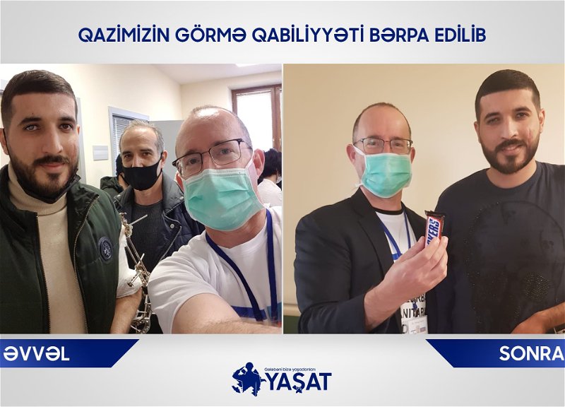 По сообщению фонда YAŞAT, израильский врач прооперировал его, поместив в глаз окулярную линзу и пересадив от израильского донора роговую оболочку глаза.