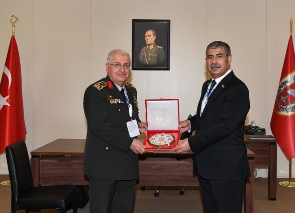 Министр обороны Азербайджана генерал-полковник Закир Гасанов, находящийся с визитом в Стамбуле для участия в Международной оборонной выставке IDEF-2021, встретился с начальником генерального штаба ВС Турции генералом армии Яшаром Гюлером.