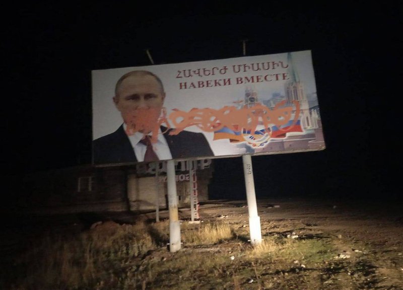Армяне разрисовали билборд с изображением Путина