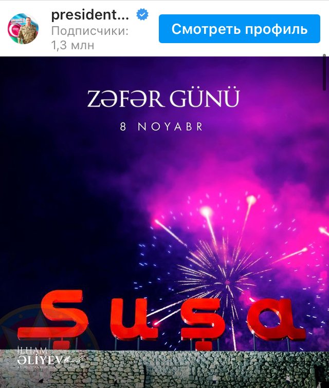 Президент Азербайджана поделился публикацией в связи с Днем Победы