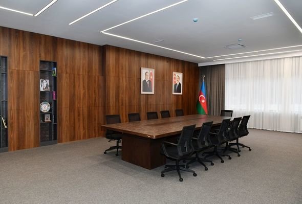 Было отмечено, что в четырехэтажном здании, общая площадь которого составляет 6 080 кв.м, имеются конференц-зал на 56 мест, актовый зал на 164 места и столовая на 70 мест, 90 рабочих кабинетов со всеми условиями, библиотека, музей, залы для выставок и собраний. В цокольном этаже функционируют автостоянка и участок технического обслуживания. На приусадебном участке здания проделаны работы по благоустройству и озеленению.