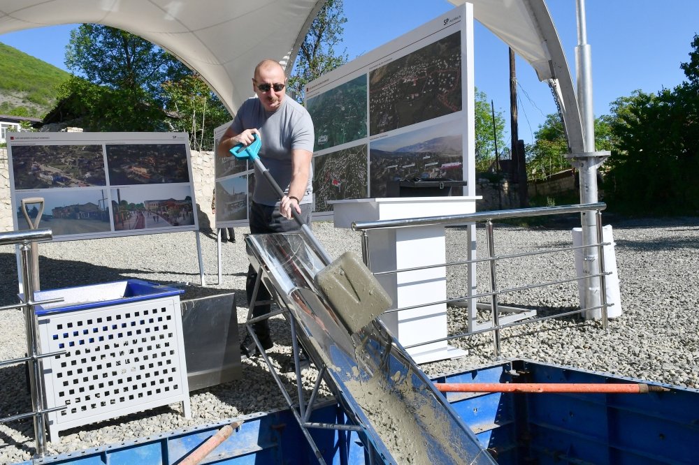 5 мая Президент Азербайджанской Республики Ильхам Алиев и первая леди Мехрибан Алиева приняли участие в церемонии закладки фундамента Административного центра в селе Туг Ходжавендского района.