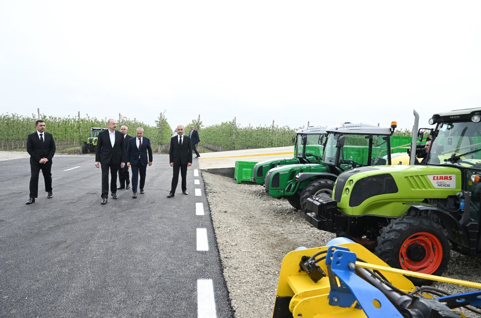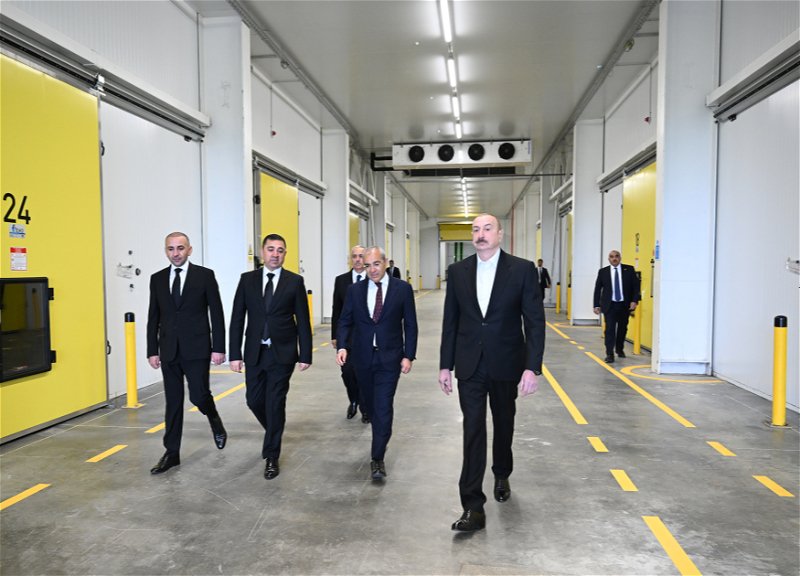 Президент Ильхам Алиев ознакомился с деятельностью садоводческого и холодильно-складского комплекса в Гусарском районе