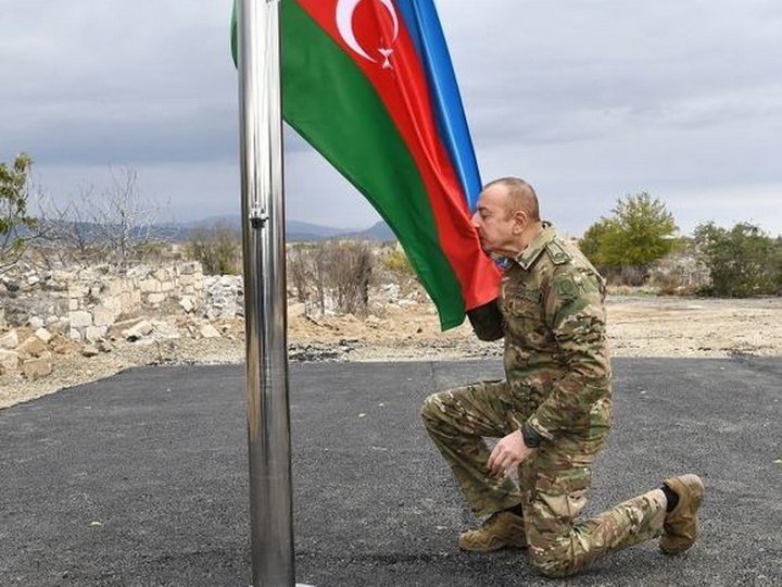 Президент Ильхам Алиев поднял в освобождённом Агдаме флаг Азербайджана